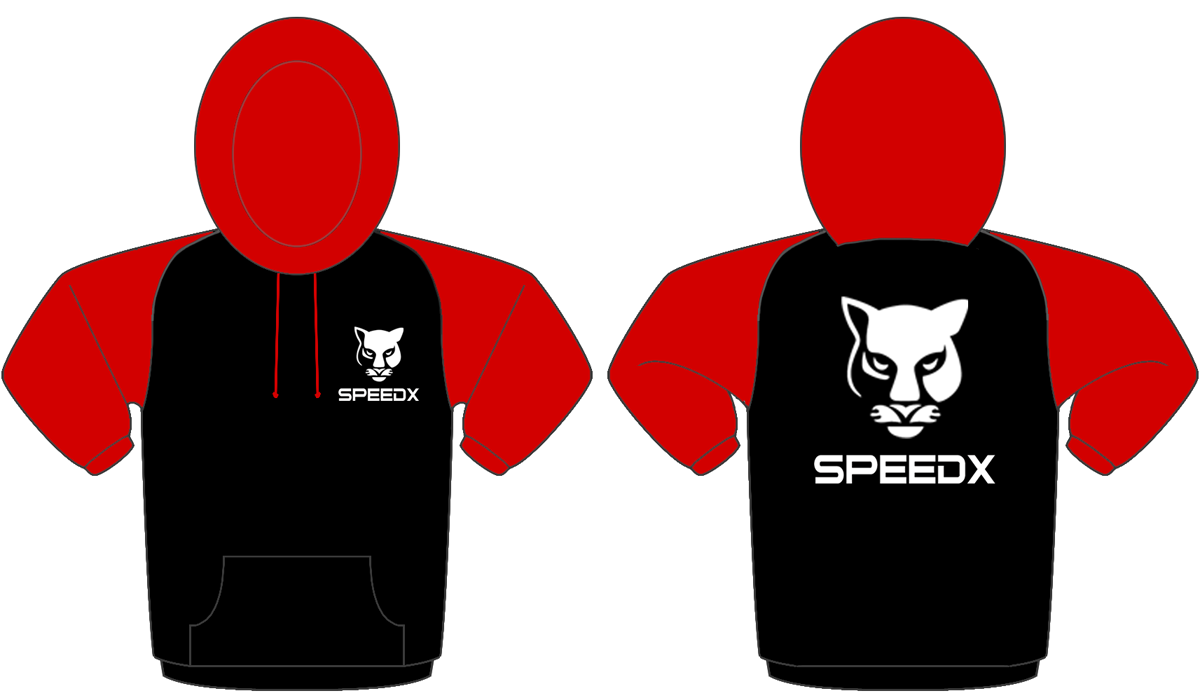 Contrast raglan sleeves. Double fabric hood with contrast drawcords. Front pocket. Ribbed cuffs and hem. Twin needle stitching.