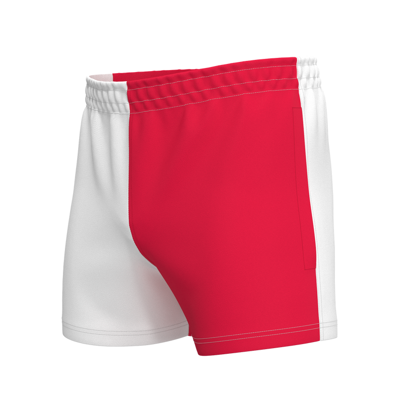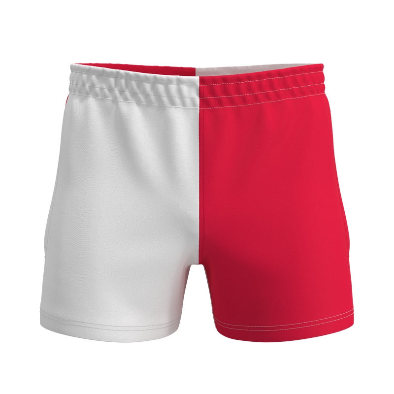 Quartered Cotton Rugby Shorts - White/Red